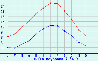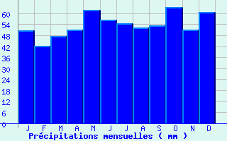 | Jan | Fev | Mars | Avr | Mai | Juin | Juil | Aout | Sept | Oct | Nov | Dec | Année | | Temp. max. (°C) | 6.2 | 7.7 | 11.9 | 15.2 | 19.5 | 22.7 | 25.7 | 25.4 | 21.2 | 16.3 | 10.1 | 6.7 | 15.8 | | Temp. moy. (°C) | 3.1 | 3.7 | 6.9 | 9.5 | 13.6 | 16.7 | 19.3 | 19 | 15.4 | 11.6 | 6.6 | 3.7 | 10.8 | | Temp. min. (°C) | -0.1 | -0.3 | 2 | 3.7 | 7.8 | 10.7 | 12.8 | 12.6 | 9.6 | 6.8 | 3 | 0.8 | 5.8 | | Jan | Fev | Mars | Avr | Mai | Juin | Juil | Aout | Sept | Oct | Nov | Dec | Année | | Jours Tx > 30°C | 0 | 0 | 0 | 0 | 0.1 | 1.5 | 5.7 | 4.9 | 0.5 | 0 | 0 | 0 | 12.8 | | Jours Tx > 25°C | 0 | 0 | 0 | 0.6 | 3.9 | 9.7 | 17 | 15.1 | 5.2 | 0.6 | 0 | 0 | 52.2 | | Jours Tx < 0°C | 3 | 2 | 0 | 0 | 0 | 0 | 0 | 0 | 0 | 0 | 0.5 | 1.9 | 7.4 | | Jours Tn < 0°C | 14.7 | 14.7 | 11 | 5.2 | 0.2 | 0 | 0 | 0 | 0 | 2.5 | 8.2 | 13 | 69.5 | | Jours Tn < -5°C | 4.8 | 4.3 | 1.2 | 0.1 | 0 | 0 | 0 | 0 | 0 | 0.1 | 1.5 | 3.4 | 15.4 | | Jours Tn < -10°C | 1.4 | 0.7 | 0.1 | 0 | 0 | 0 | 0 | 0 | 0 | 0 | 0.1 | 0.5 | 2.8 | | | | Jan | Fev | Mars | Avr | Mai | Juin | Juil | Aout | Sept | Oct | Nov | Dec | Année | | RR mensuel (mm) | 50.5 | 42.1 | 47.7 | 50.9 | 61.7 | 56.6 | 54.4 | 52.2 | 53.3 | 63.6 | 51.2 | 60.6 | 644.8 | | Jan | Fev | Mars | Avr | Mai | Juin | Juil | Aout | Sept | Oct | Nov | Dec | Année | | Jours RR > 1mm | 10.6 | 9.2 | 10.5 | 9.5 | 10.5 | 9.3 | 7.6 | 7.7 | 8.2 | 9.7 | 10.3 | 11.3 | 114.5 | | Jours RR > 5mm | 3.9 | 2.5 | 3.3 | 3.7 | 4.3 | 3.9 | 3.6 | 3.2 | 3.5 | 4 | 3.5 | 4.5 | 43.8 | | Jours RR > 10mm | 0.9 | 0.8 | 0.8 | 1.3 | 1.8 | 1.4 | 1.8 | 1.6 | 1.5 | 1.8 | 1.2 | 1.4 | 16.2 | | | | Jan | Fev | Mars | Avr | Mai | Juin | Juil | Aout | Sept | Oct | Nov | Dec | Année | | Vent moyen (km/h) | 15.8 | 15.1 | 15.1 | 13.7 | 12.2 | 11.5 | 12.2 | 11.5 | 11.9 | 13.3 | 13.7 | 15.1 | 13.3 | | Jan | Fev | Mars | Avr | Mai | Juin | Juil | Aout | Sept | Oct | Nov | Dec | Année | | Jours rafales >= 58km/h | 6.7 | 5.6 | 5.9 | 3.2 | 2.8 | 2.2 | -- | 2.5 | 2.6 | 4.1 | 3.9 | 5.5 | -- | | Jours rafales >= 100km/h | 0.2 | 0.3 | 0.1 | 0 | 0 | 0 | -- | 0.1 | 0 | 0 | 0.2 | 0.2 | -- | | | | Jan | Fev | Mars | Avr | Mai | Juin | Juil | Aout | Sept | Oct | Nov | Dec | Année | | Jours avec brouillard (*) | 3.5 | 2.8 | 2.2 | 1.6 | 1.4 | 1.9 | 0.9 | 1.9 | 3.8 | 5.3 | 5.2 | 3.7 | 34.3 | | Jours avec orage (*) | 0.1 | 0.1 | 0.4 | 1.2 | 3 | 3.5 | 4.3 | 3.2 | 1.6 | 0.9 | 0.2 | 0.2 | 18.7 | | Jours avec grêle (*) | 0.1 | 0.1 | 0.1 | 0.3 | 0.1 | 0.2 | 0.1 | 0.1 | 0.1 | 0 | 0 | 0.1 | 1.4 | | Jours avec neige (*) | 3.7 | 4.6 | 2.5 | 0.4 | 0 | 0 | 0 | 0 | 0 | 0 | 1.6 | 3.2 | 15.9 | | | | Jan | Fev | Mars | Avr | Mai | Juin | Juil | Aout | Sept | Oct | Nov | Dec | Année | | Ensoleillement (heures) | 68.6 | 88.3 | 143.8 | 184.8 | 215 | 229.4 | 235.5 | 228.2 | 179.2 | 123.6 | 66.6 | 53.6 | 1816.4 |