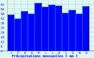 | Jan | Fev | Mars | Avr | Mai | Juin | Juil | Aout | Sept | Oct | Nov | Dec | Année | | Temp. max. (°C) | 5.7 | 7.1 | 11.3 | 14.7 | 18.8 | 21.8 | 24.7 | 24.3 | 20.3 | 15.6 | 9.7 | 6.3 | 15.1 | | Temp. moy. (°C) | 2.9 | 3.6 | 6.9 | 9.4 | 13.4 | 16.3 | 18.8 | 18.5 | 15 | 11.4 | 6.6 | 3.7 | 10.6 | | Temp. min. (°C) | 0.1 | 0.1 | 2.6 | 4.2 | 8.1 | 10.8 | 12.9 | 12.6 | 9.8 | 7.2 | 3.4 | 1.1 | 6.1 | | Jan | Fev | Mars | Avr | Mai | Juin | Juil | Aout | Sept | Oct | Nov | Dec | Année | | Jours Tx > 30°C | 0 | 0 | 0 | 0 | 0 | 1 | 3.7 | 3 | 0 | 0 | 0 | 0 | 7.8 | | Jours Tx > 25°C | 0 | 0 | 0 | 0.4 | 2.6 | 7.5 | 13.7 | 12.4 | 3.7 | 0.2 | 0 | 0 | 40.5 | | Jours Tx < 0°C | 3 | 1.9 | 0.1 | 0 | 0 | 0 | 0 | 0 | 0 | 0 | 0.5 | 1.9 | 7.4 | | Jours Tn < 0°C | 14 | 13.1 | 9.1 | 4.4 | 0.2 | 0 | 0 | 0 | 0 | 2.3 | 6.9 | 12 | 62.1 | | Jours Tn < -5°C | 4.9 | 4.4 | 0.9 | 0.2 | 0 | 0 | 0 | 0 | 0 | 0.1 | 1.6 | 3.2 | 15.2 | | Jours Tn < -10°C | 1.4 | 0.9 | 0 | 0 | 0 | 0 | 0 | 0 | 0 | 0 | 0.1 | 0.4 | 2.8 | | | | Jan | Fev | Mars | Avr | Mai | Juin | Juil | Aout | Sept | Oct | Nov | Dec | Année | | RR mensuel (mm) | 46.4 | 41.2 | 50.9 | 47.6 | 61.7 | 56.7 | 59.2 | 58.3 | 48.7 | 52.4 | 47.7 | 57.4 | 628.2 | | Jan | Fev | Mars | Avr | Mai | Juin | Juil | Aout | Sept | Oct | Nov | Dec | Année | | Jours RR > 1mm | 10.3 | 9.6 | 10.9 | 9.6 | 10.4 | 9.5 | 8.1 | 8.3 | 8.2 | 8.9 | 9.7 | 10.7 | 114.4 | | Jours RR > 5mm | 3 | 2.5 | 3.9 | 3.4 | 4.2 | 3.5 | 3.7 | 3.5 | 3.4 | 3.6 | 3.1 | 3.8 | 41.6 | | Jours RR > 10mm | 0.9 | 0.6 | 0.7 | 0.9 | 1.5 | 1.3 | 1.8 | 1.8 | 1.3 | 1.3 | 0.8 | 1.3 | 14.2 | | | | Jan | Fev | Mars | Avr | Mai | Juin | Juil | Aout | Sept | Oct | Nov | Dec | Année | | Vent moyen (km/h) | 15.8 | 15.1 | 15.1 | 13.7 | 12.2 | 11.5 | 11.5 | 10.8 | 11.9 | 13.3 | 13.7 | 14.8 | 13.3 | | Jan | Fev | Mars | Avr | Mai | Juin | Juil | Aout | Sept | Oct | Nov | Dec | Année | | Jours rafales >= 58km/h | 6.6 | 5.2 | 5.1 | 3.7 | 2.3 | 2.3 | 2.6 | 1.7 | 2.2 | 3.5 | 3.2 | 5.1 | 43.6 | | Jours rafales >= 100km/h | 0.2 | 0.3 | 0.1 | 0 | 0 | 0 | 0 | 0 | 0 | 0.1 | 0.1 | 0.1 | 1 |